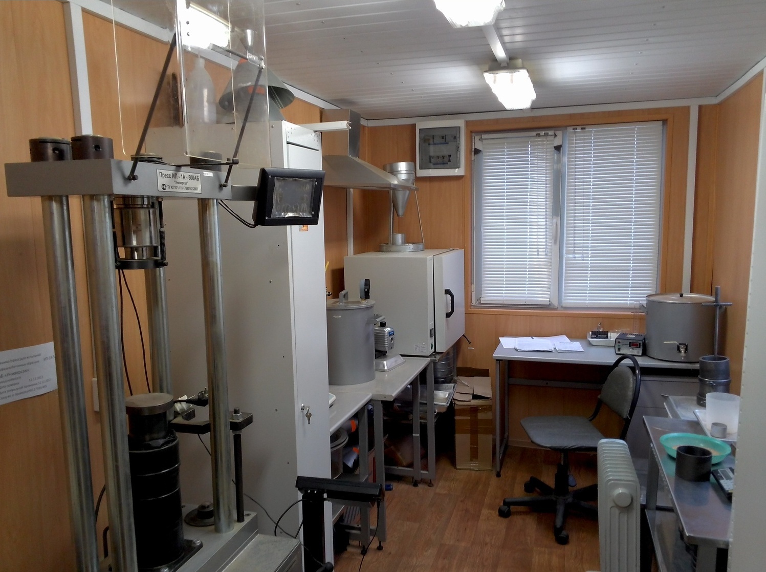 - Испытательная лаборатория на стройплощадке — Оперативный контроль прочности бетона, качества грунтов, строительных материалов.